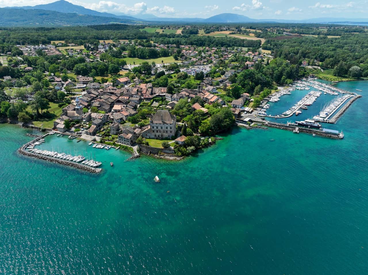 Another gem in the region is the village of Gruyère, an ancient medieval town. We recommend trying a moitié-moitié fondue, and on the way you can discover Lausanne or Montreux, two beautiful towns on Lake Geneva.